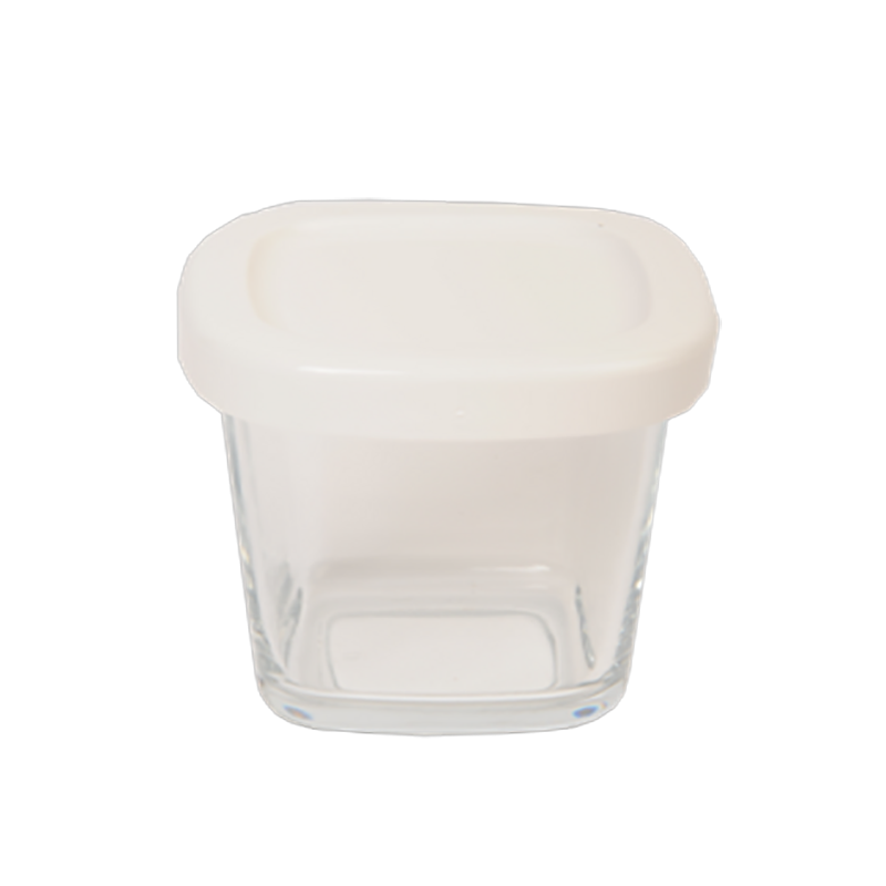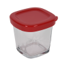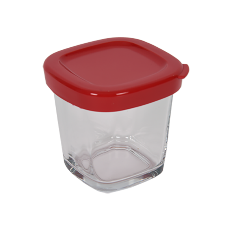 Un pot de 140 ml, avec couvercle rouge équipé de languette pour une ouverture facile et un égouttoir. Il peut être utilisé avec ou sans égouttoir. Lavable au lave-vaisselle.